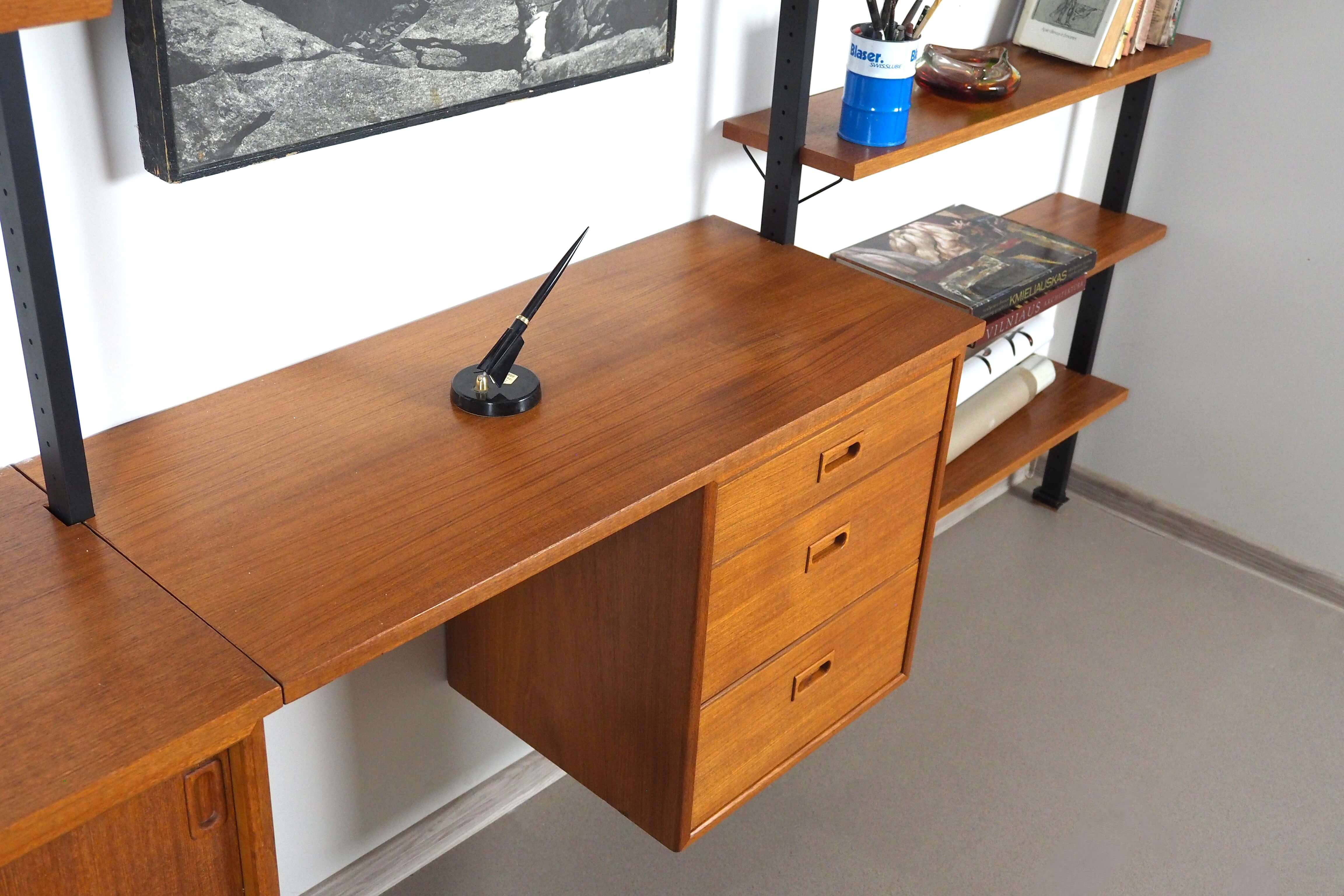 Pilnai restauruota švediška modulinė sistema "Pira", kurią apie 1950-uosius sukūrė švedų architektas Olle Pira ir kuri tapo skandinaviško modernizmo etalonu. Elegantiška, funkcionali ir pritaikoma bet kokiai erdvei – nuo namų biuro iki svetainės. Tvirtas, bet vizualiai lengvas modulinis dizainas. Lengva sukomponuoti pagal savo poreikius: keisti aukštį, plotį, derinti lentynas, spinteles pagal savo erdvę.
