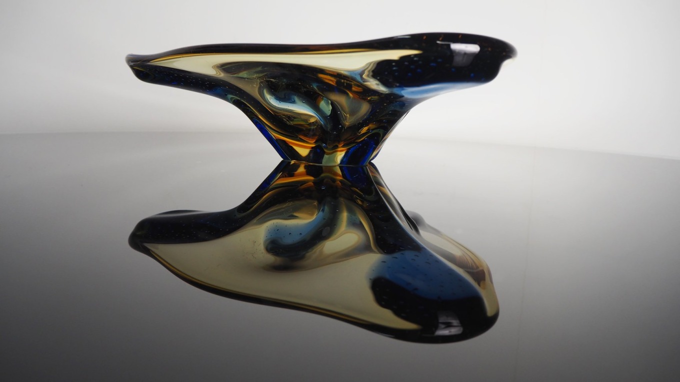 Aptakios organiškos formos, švelniai susiliejantys ir besimainantys gintariniai ir mėlyni atspalviai, stikle įamžinti smulkūs oro burbuliukai sukuria nepakartojamą menišką derinį. Kolekcija "Hana" sukurta 1963 m.