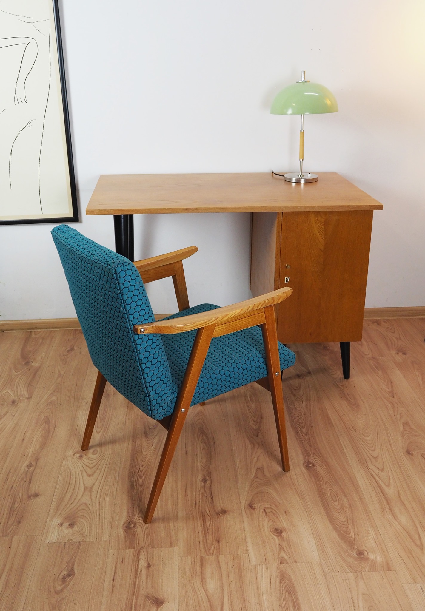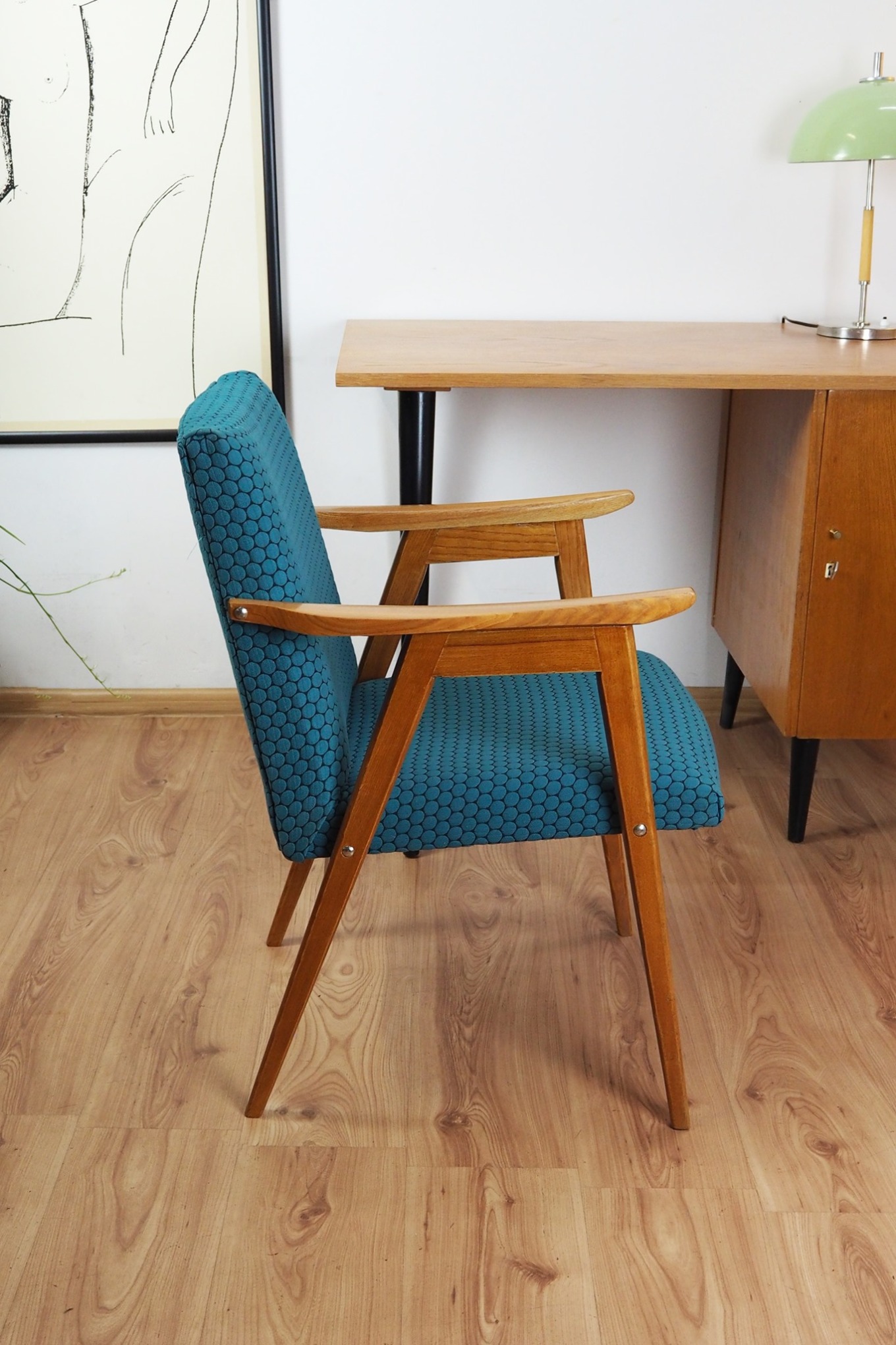 Neišliko duomenų, kuris lietuvis architektas sukurė šią asketišką, ryškiu Mid Century Modern braižu išsiskiriančią darbo kėdę. Pagal išlikusius dokumentus, šio modelio numeris yra 314, o žiūrint iš šono kojos ir rankena sudaro raidės „Pi“ formą. Todėl ją ir pavadinome „Pi“ kėde.